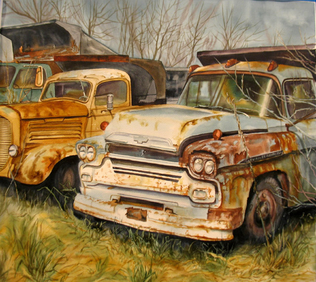 58′ Chevy and A 37′ Dodge, Watercolor Sold